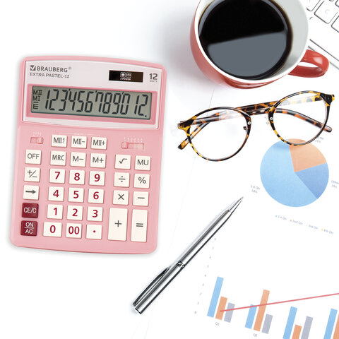 Настольный калькулятор BRAUBERG EXTRA PASTEL-12-PK. Большой дисплей с увеличенным углом обзора, устойчивый корпус и клавиатура с цветной дифференциацией для эффективной работы с максимальным комфортом.