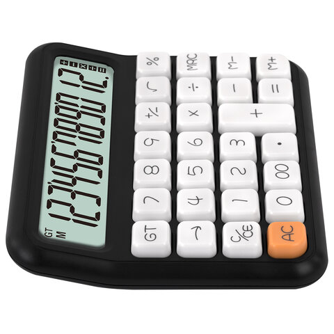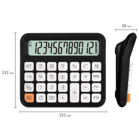 Калькулятор настольный BRAUBERG KW-1000-BK (152x132 мм), 3D-кнопки, 12 разрядов, черный, 272956