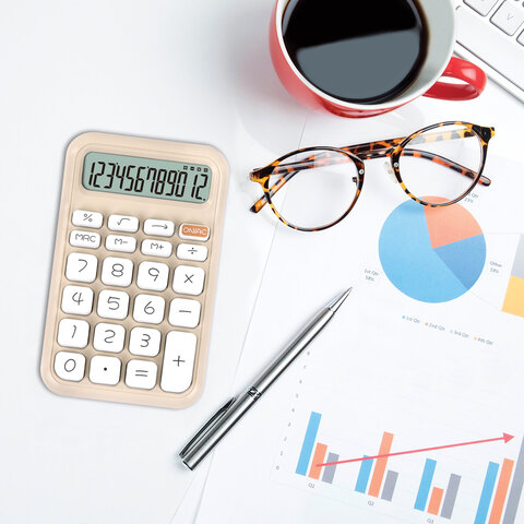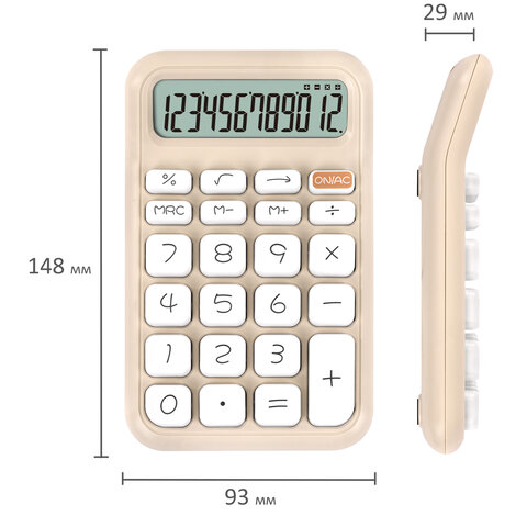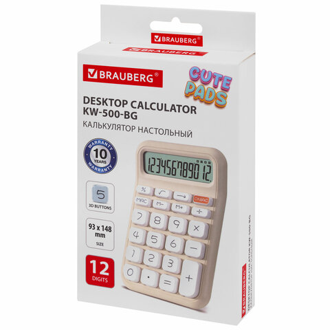 Калькулятор настольный BRAUBERG KW-500-BG (93x148 мм), 3D-кнопки, 12 разрядов, бежевый, 272955