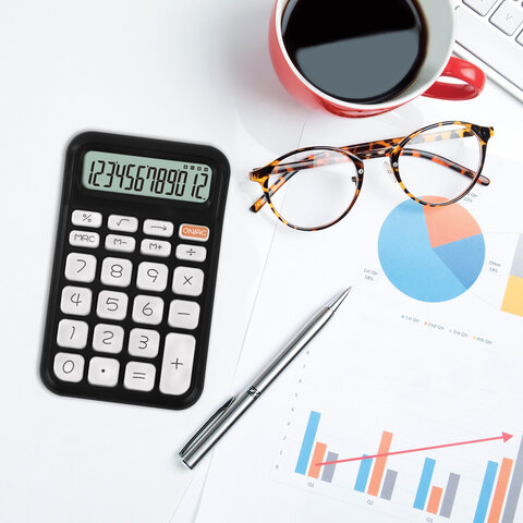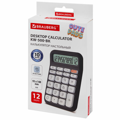 Калькулятор настольный BRAUBERG KW-500-BK (93x148 мм), 3D-кнопки, 12 разрядов, черный, 272954