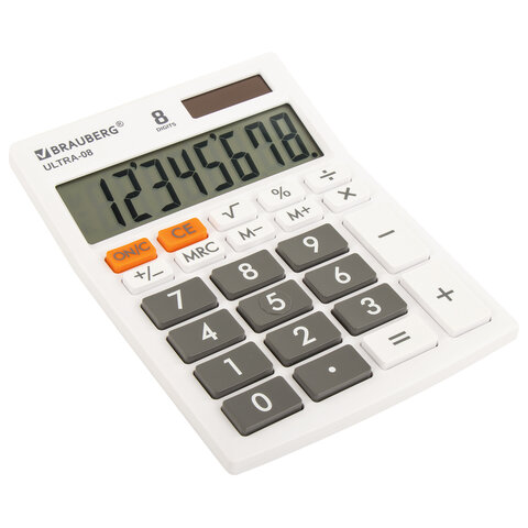 Настольный калькулятор BRAUBERG ULTRA-08-WT. Большой яркий дисплей, устойчивый корпус с прорезиненными ножками и крупная клавиатура с цветной дифференциацией позволяют работать эффективнее с максимальным комфортом.
