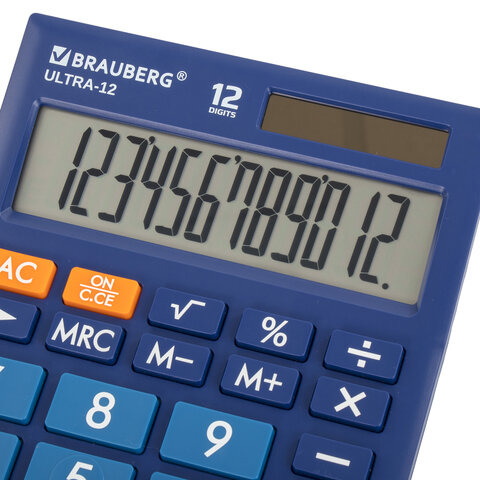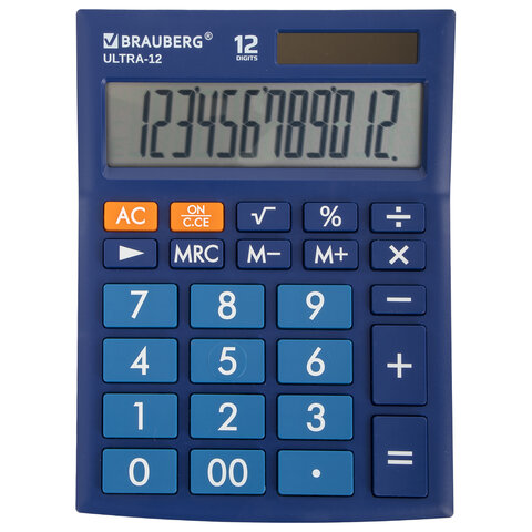 Настольный калькулятор BRAUBERG ULTRA-12-BU. Большой яркий дисплей, устойчивый корпус с прорезиненными ножками и крупная клавиатура с цветной дифференциацией позволяют работать эффективнее с максимальным комфортом.