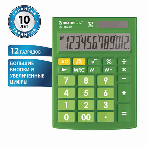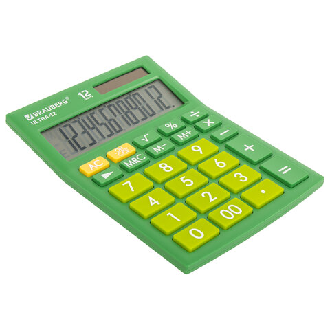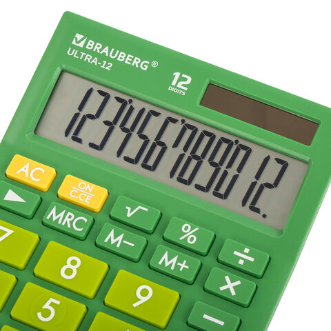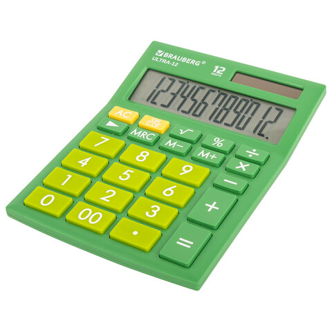 Настольный калькулятор BRAUBERG ULTRA-12-GN. Большой яркий дисплей, устойчивый корпус с прорезиненными ножками и крупная клавиатура с цветной дифференциацией позволяют работать эффективнее с максимальным комфортом.
