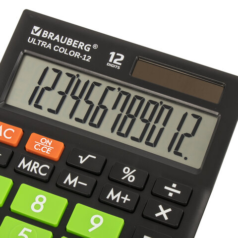 Настольный калькулятор BRAUBERG ULTRA COLOR-12-BKLG. Большой яркий дисплей, устойчивый корпус с прорезиненными ножками и крупная клавиатура с цветной дифференциацией позволяют работать эффективнее.