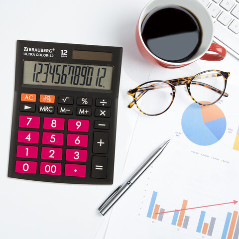 Настольный калькулятор BRAUBERG ULTRA COLOR-12-BKWR. Большой яркий дисплей, устойчивый корпус с прорезиненными ножками и крупная клавиатура с цветной дифференциацией позволяют работать эффективнее.