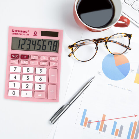 Настольный калькулятор BRAUBERG ULTRA PASTEL-08-PK. Большой яркий дисплей, устойчивый корпус с прорезиненными ножками и крупная клавиатура с цветной дифференциацией позволяют работать эффективнее.