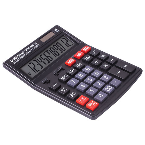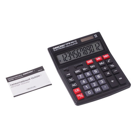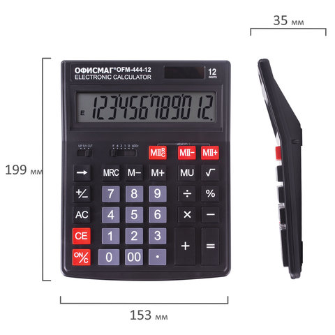 Калькулятор настольный ОФИСМАГ OFM-444 (199x153 мм), 12 разрядов, двойное питание, ЧЕРНЫЙ, 250459