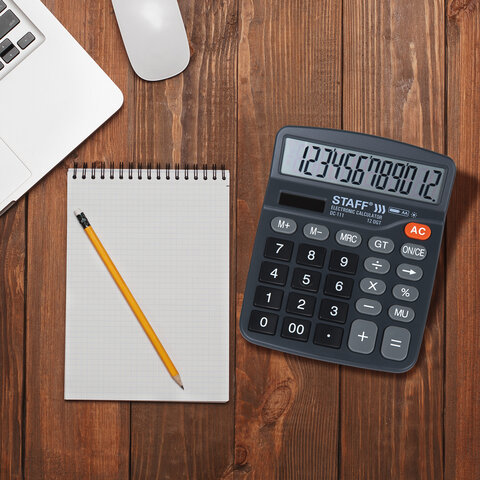 Простой в использовании и точный в расчётах настольный калькулятор STAFF PLUS STF-111 выполняет все необходимые вычисления на работе и дома. Кнопки нажимаются легко и приятно, эргономичный наклон корпуса позволяет работать с максимальным комфортом.