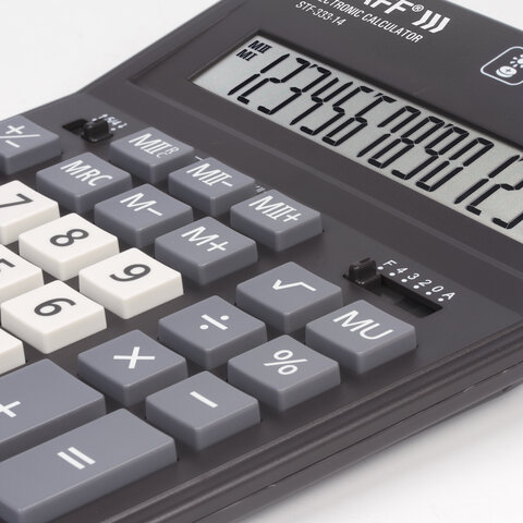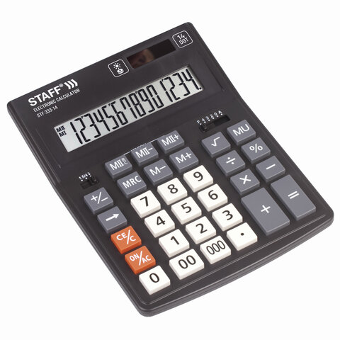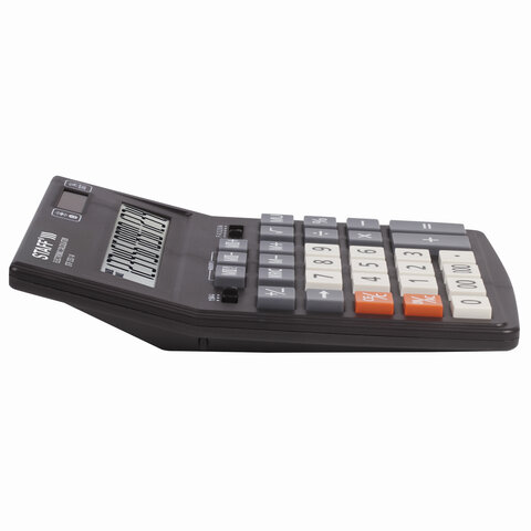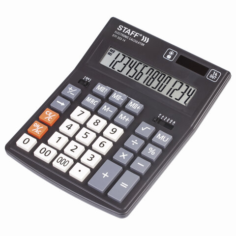 Простой в использовании и точный в расчётах настольный калькулятор STAFF PLUS STF-333 выполняет все необходимые вычисления на работе и дома. Кнопки нажимаются легко и приятно, эргономичный наклон корпуса позволяет работать с максимальным комфортом.