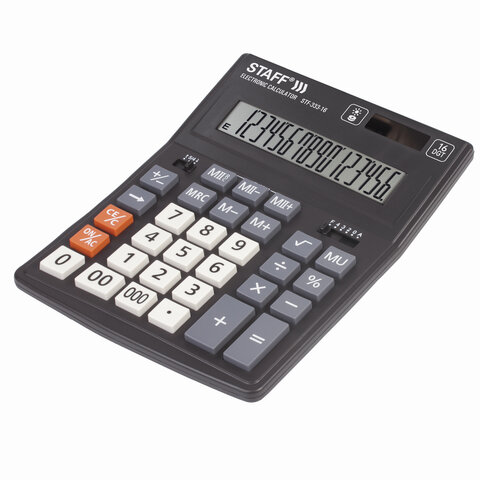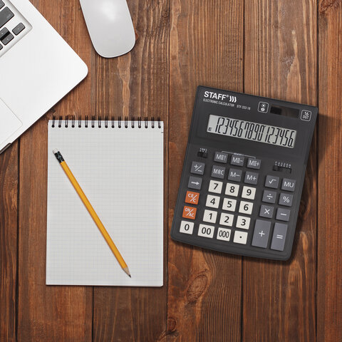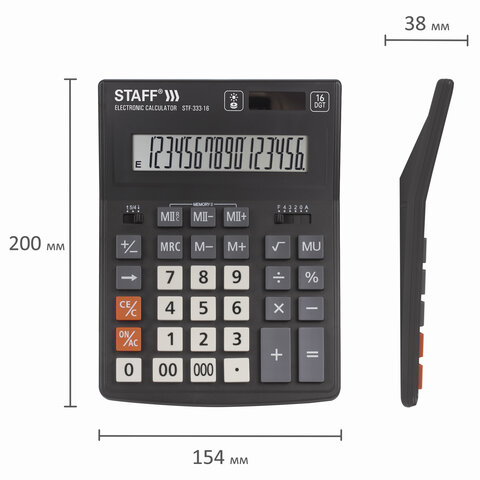 Калькулятор настольный STAFF PLUS STF-333 (200x154 мм), 16 разрядов, двойное питание, 250417