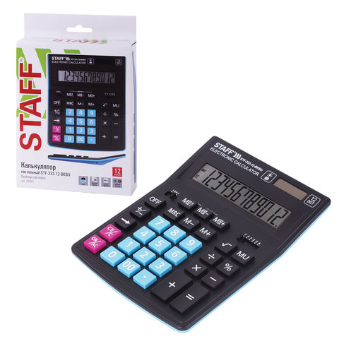Калькулятор настольный STAFF PLUS STF-333-BKBU ( 200x154 мм) 12 разрядов, ЧЕРНО-СИНИЙ, 250461