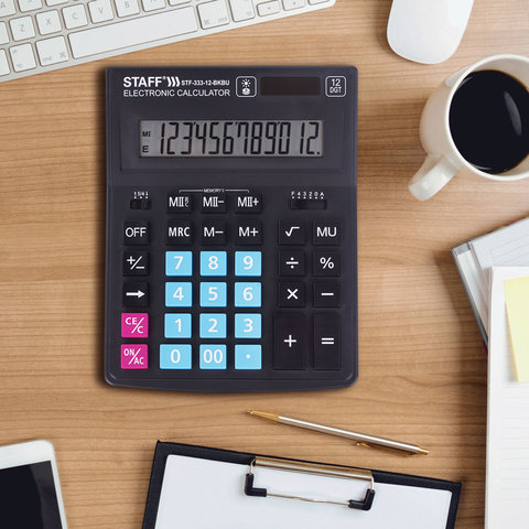 Настольный калькулятор STAFF "PLUS" STF-333-BKBU популярен как среди бухгалтеров, так и среди продавцов, банковских и офисных сотрудников.