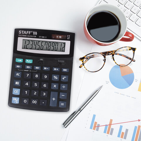 Простой в использовании и точный в расчётах настольный калькулятор STAFF STF-888-12 выполняет все необходимые вычисления на работе и дома. Кнопки нажимаются легко и тихо, позволяя работать с максимальным комфортом.
