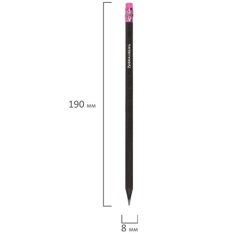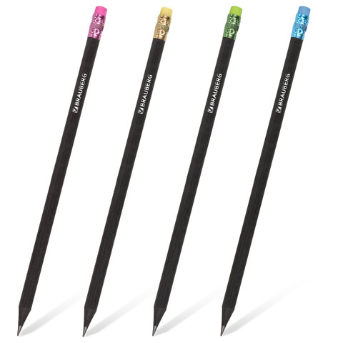 Карандаш чернографитный BRAUBERG, 1 шт., "Black Wood", НВ, с ластиком ассорти, черное дерево, заточенный, 180629
