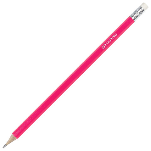 Карандаш чернографитный BRAUBERG, 1 шт., "Fluor", НВ, с ластиком, корпус неоновый ассорти, заточенный, 180613