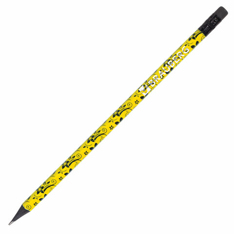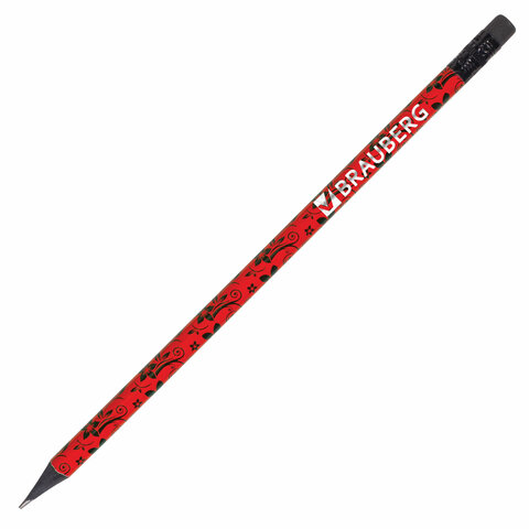 Карандаш чернографитный BRAUBERG, 1 шт., "Fuete", НВ, c ластиком, черное дерево, корпус ассорти, 180634