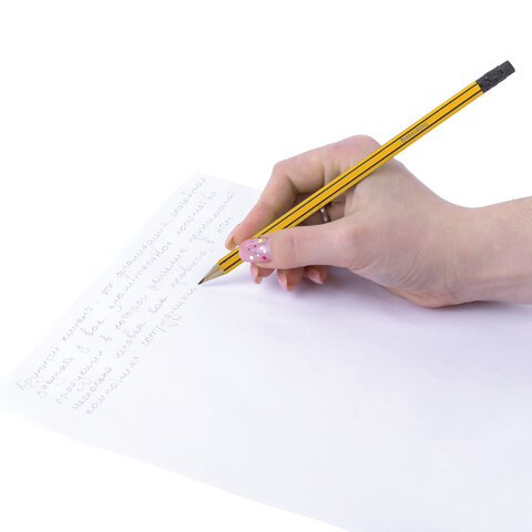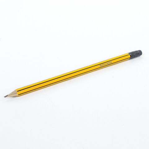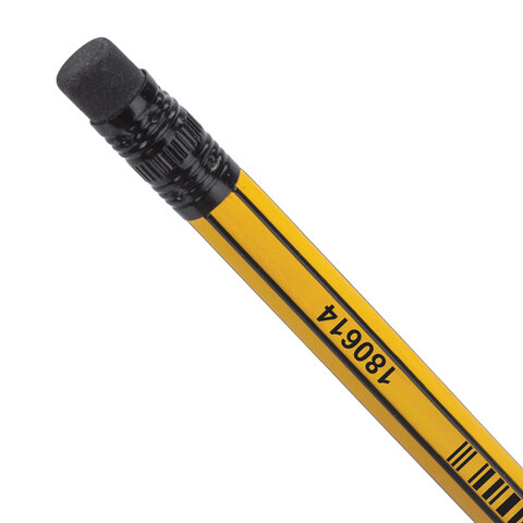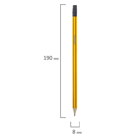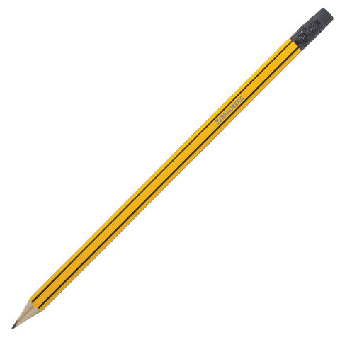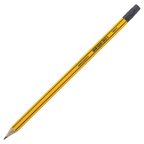 Карандаш чернографитный BRAUBERG, 1 шт., НВ, с ластиком, корпус желтый с черными полосами, заточенный, 180614