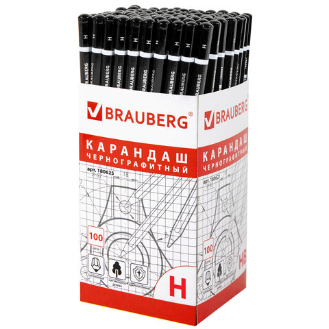 Карандаш чернографитный BRAUBERG, 1 шт., "Touch line", Н, корпус черный, заточенный, 180625