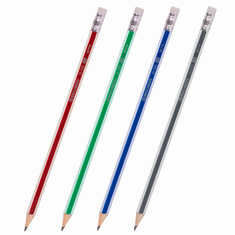 Карандаш чернографитный BRAUBERG "G-100", 1 шт., HB, с ластиком, корпус ассорти, 181714