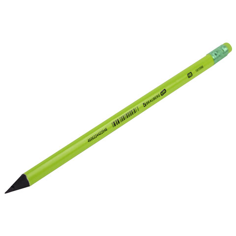 Карандаш чернографитный BRAUBERG KIDS, 1 шт., HB, трехгранный, с ластиком, 181996