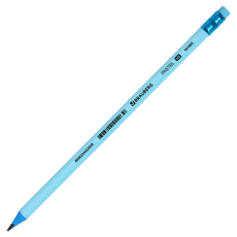 Карандаш чернографитный BRAUBERG "PASTEL", 1 шт., HB, трехгранный, с ластиком, 181995