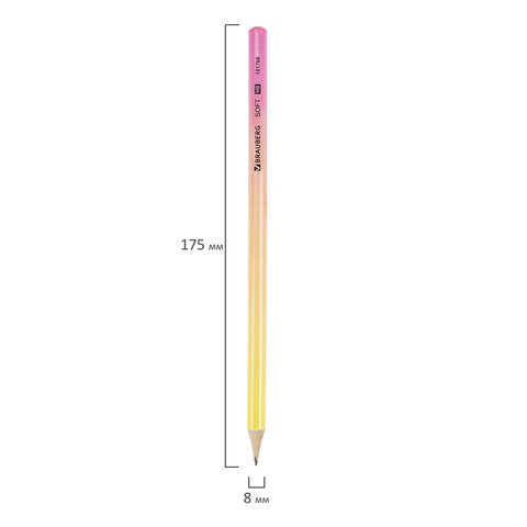 Карандаш чернографитный BRAUBERG "SOFT PASTEL", 1 шт., HB, корпус ассорти, 181768