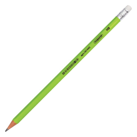 Карандаш чернографитный ПИФАГОР, 1 шт., НВ, пластиковый, корпус салатовый, с ластиком, 181445