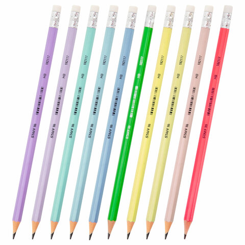 Карандаш чернографитный с ластиком STAFF EVERYDAY BLP-CLR, 1 шт., НВ, цвет корпуса ассорти, 182117