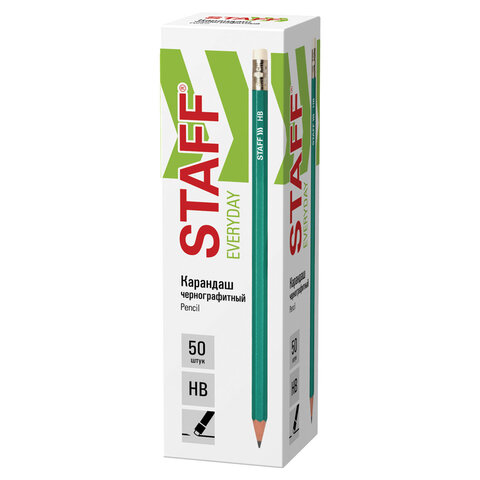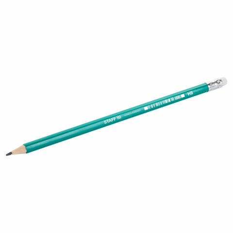 Карандаш чернографитный с ластиком STAFF EVERYDAY BLP-GRN, 1 шт., НВ, пластик., корпус зеленый, 181939