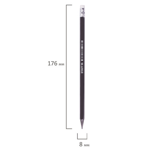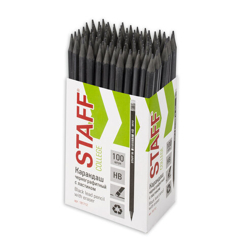 Карандаш чернографитный STAFF "College" BLP-712, 1 шт., НВ, с ластиком, пластик, корпус черный, 181712