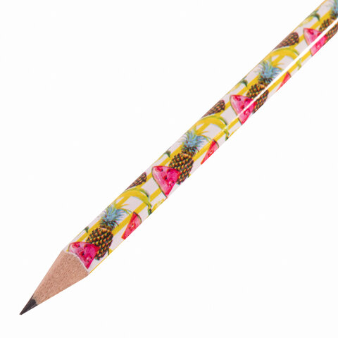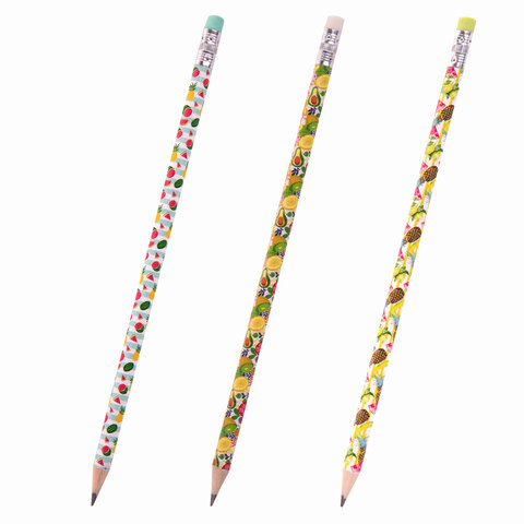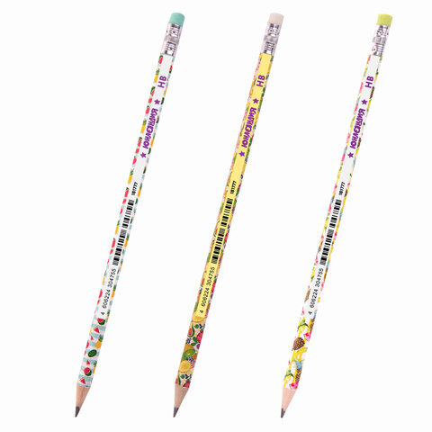 Карандаш чернографитный ЮНЛАНДИЯ "ФРУКТЫ", 1 шт., HB, с ластиком, корпус ассорти, 181777