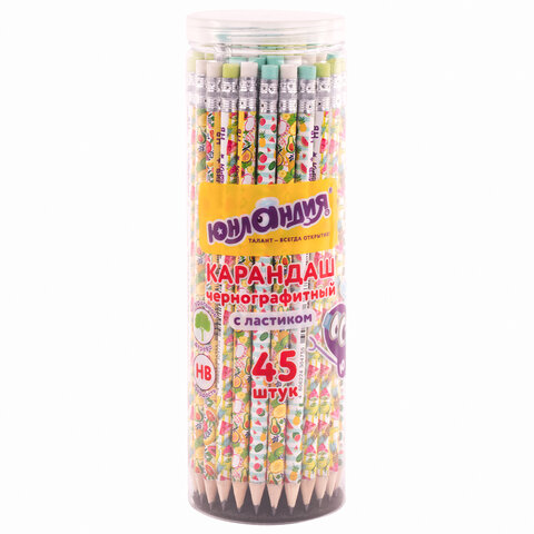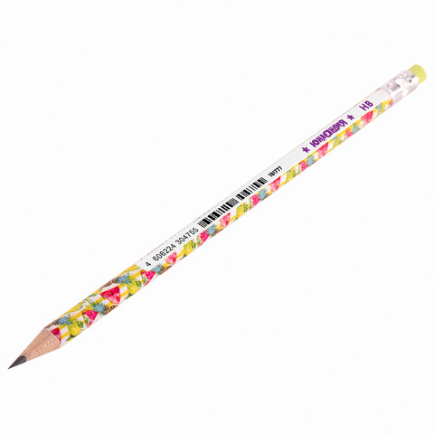 Карандаш чернографитный ЮНЛАНДИЯ "ФРУКТЫ" изготовлен из дерева высокого качества и оснащен ластиком. Предназначен для детского и художественного творчества. Отлично подходит для выполнения чертежных, графических и художественных работ.