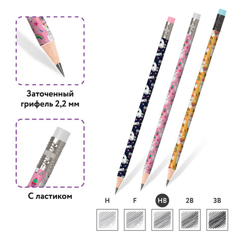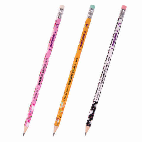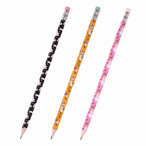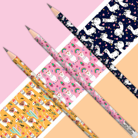 Карандаш чернографитный ЮНЛАНДИЯ "ЛАМЫ", 1 шт., HB, с ластиком, корпус ассорти, 181773