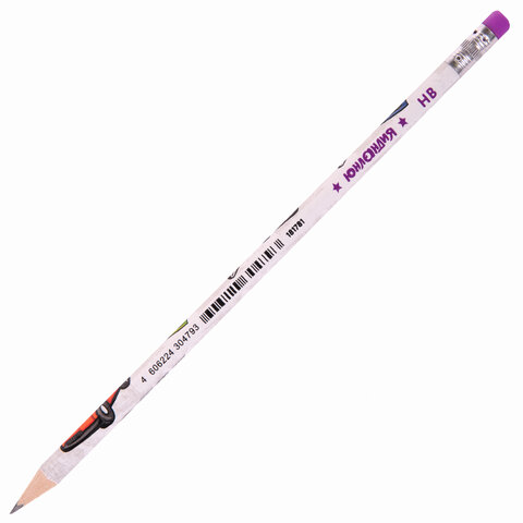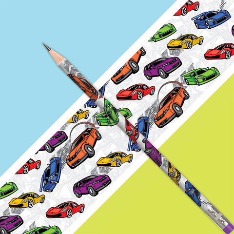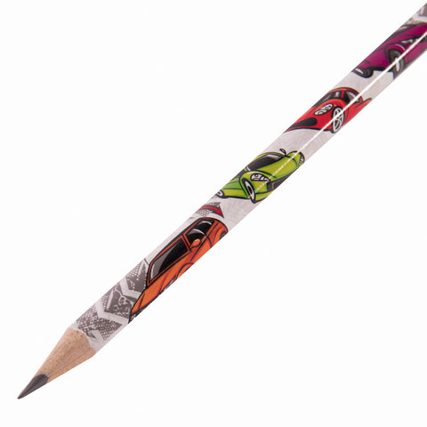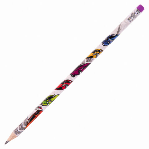 Карандаш чернографитный ЮНЛАНДИЯ "МАШИНКИ", 1 шт., HB, с ластиком, корпус с печатью, 181781