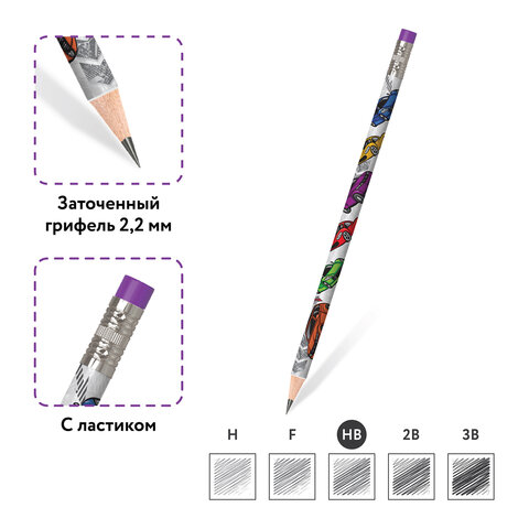 Карандаш чернографитный ЮНЛАНДИЯ "МАШИНКИ" изготовлен из дерева высокого качества и оснащен ластиком. Предназначен для детского и художественного творчества. Отлично подходит для выполнения чертежных, графических и художественных работ.