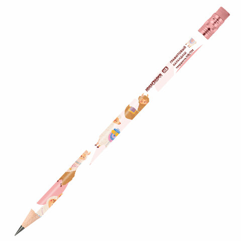 Карандаш чернографитный с принтом ЮНЛАНДИЯ "FAT ANIMALS", 1 шт., HB, с ластиком, корпус ассорти, 182012
