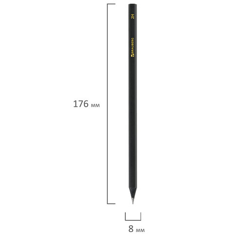 Карандаши чернографитные BRAUBERG НАБОР 12 шт., "Black Jack", 2Н-4В, без резинки, черные, дерево, заточенные, 180620