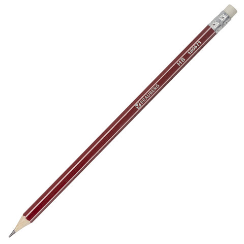 Карандаши чернографитные BRAUBERG НАБОР 12 шт., "ZTX", HB, с резинкой, красный корпус, картонная упаковка, 180671