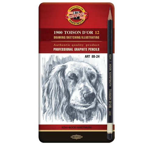 Карандаши чернографитные KOH-I-NOOR "Toison D'or", НАБОР 12 шт., 8B-2H, металлическая коробка, 1912012001PL, 1912012001PLRU