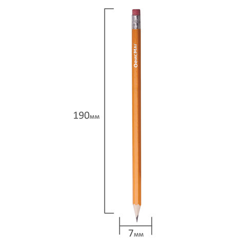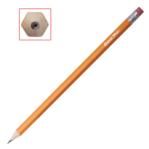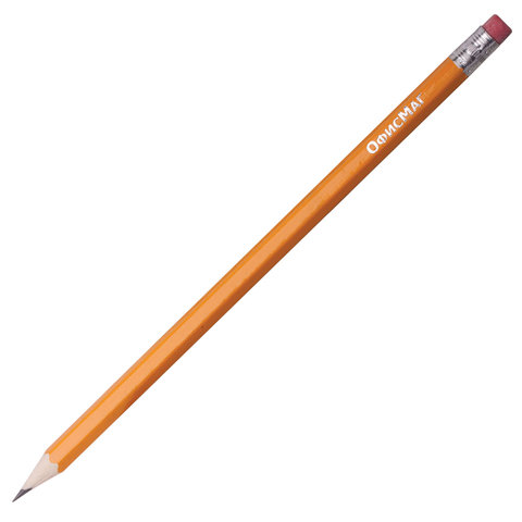 Карандаши чернографитные простые с ластиком HB, ВЫГОДНАЯ УПАКОВКА КОМПЛЕКТ 48 штук, ОФИСМАГ, 180639