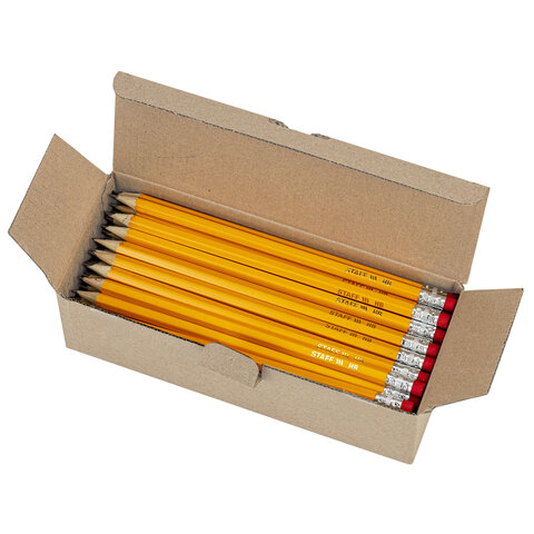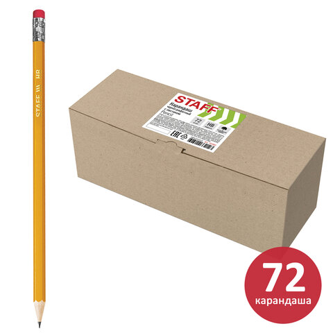 Карандаши чернографитные простые с ластиком HB, ВЫГОДНАЯ УПАКОВКА КОМПЛЕКТ 72 штуки, STAFF, 181882