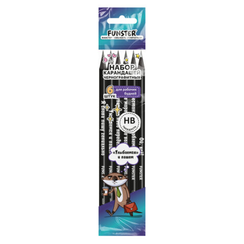 Набор карандашей чернографитных c забавной надписью FUNSTER (ФАНСТЕР) FUNNY NOTES BLK, 6 штук, HB, с ластиком, 182039
