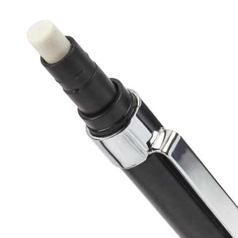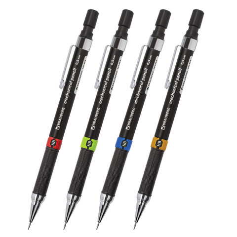 Механический карандаш BRAUBERG с корпусом черного цвета и хромированными деталями. Оснащен передвижным колечком, позволяющим обозначить твердость грифеля внутри.