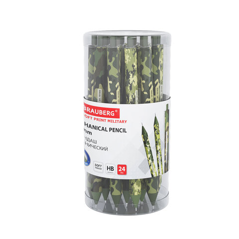 Карандаш механический 0,5 мм, BRAUBERG SOFT PRINT MILITARY, HB, корпус soft-touch ассорти, 181959