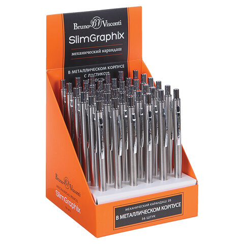 Карандаш механический 0,5 мм, BRUNO VISCONTI "SlimGraphix", металлический корпус, ластик, 21-0031