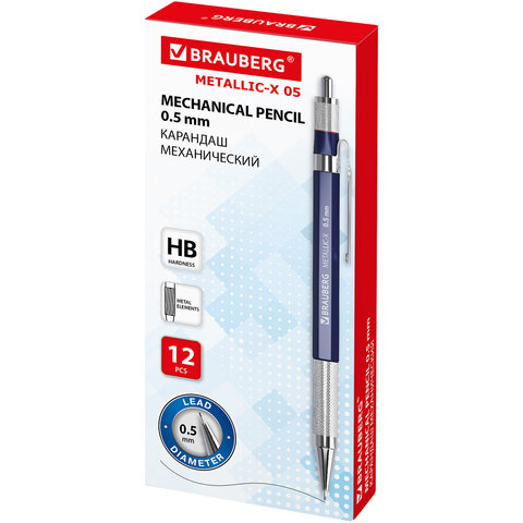 Карандаш механический 0,5 мм, HB, BRAUBERG METALLIC X-05, металлические детали, 181974