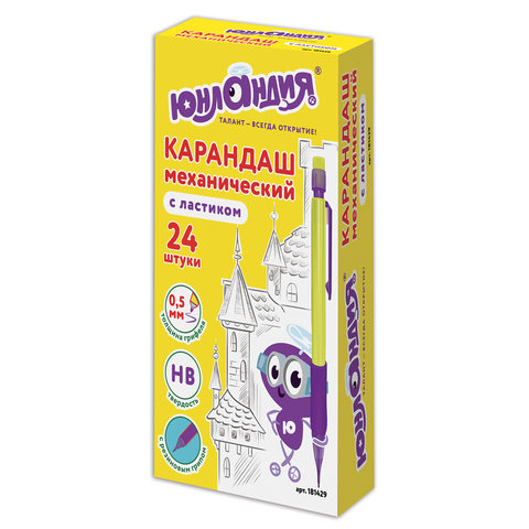 Карандаш механический 0,5 мм, ЮНЛАНДИЯ "Юнландик-архитектор", ластик, резиновый грип, 181429