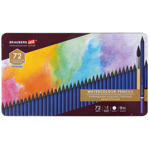 Карандаши художественные цветные акварельные, 72 цвета, 4 мм, металлический кейс, BRAUBERG ART PREMIERE, 181925