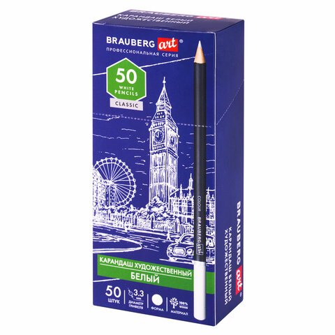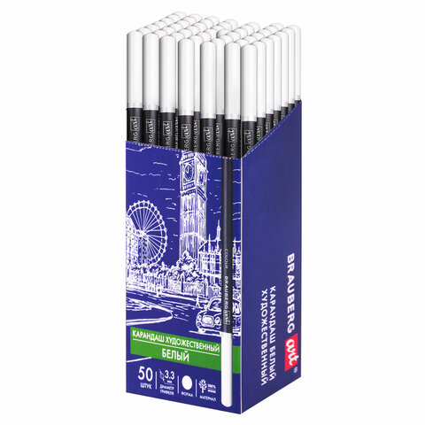 Белый карандаш BRAUBERG ART "CLASSIC" обеспечивает гладкое письмо благодаря мягкому грифелю диаметром 3,4 мм.