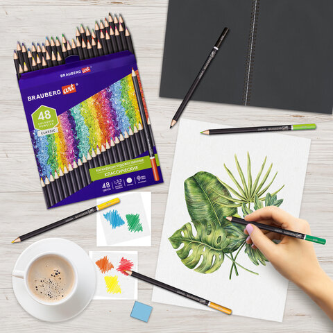 Карандаши художественные цветные BRAUBERG ART CLASSIC, 48 цветов, МЯГКИЙ грифель 3,3 мм, 181539